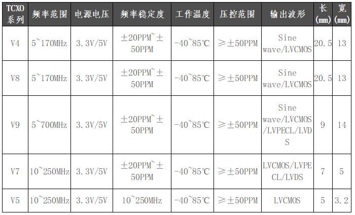 The oscillation frequency can reach 700MHz. The output frequency of the crystal oscillator is controlled by an external voltage, allowing the voltage-frequency pulling range of the crystal oscillator to reach ±50ppm~±200ppm. It is mainly used in various testing equipment, communication equipment, frequency synthesis, phase-locked loop and other fields.